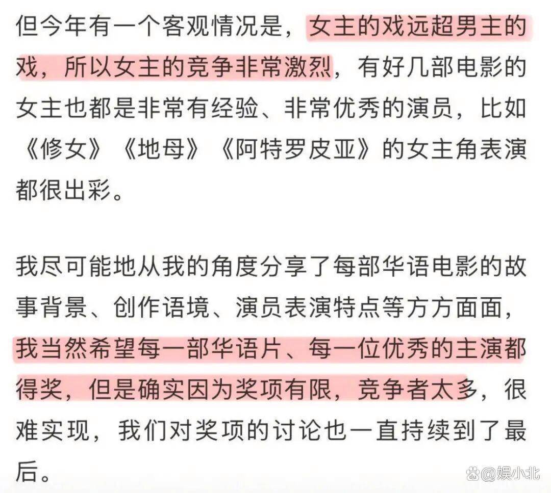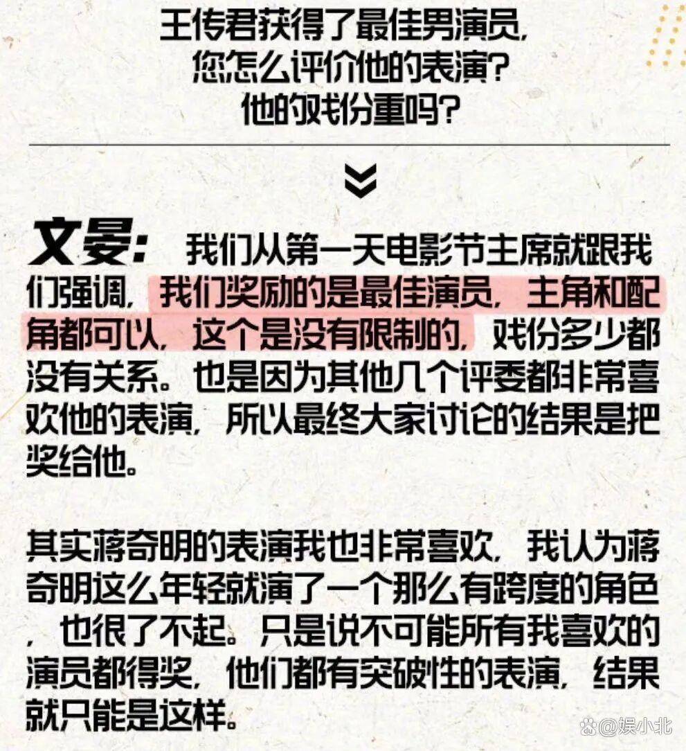关键是,王传君拿不拿奖都不关她的事,两个人的赛道都不同。